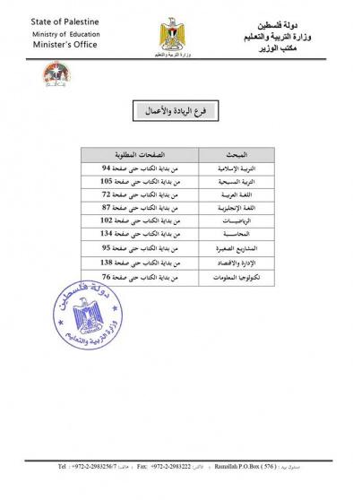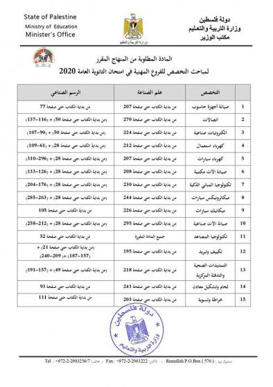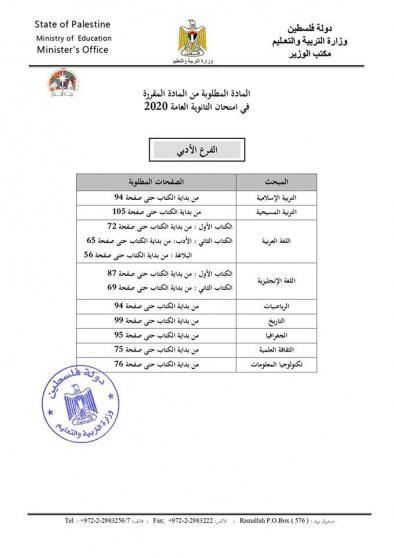 التربية تحدد المادة المطلوبة في امتحان الثانوية العامة