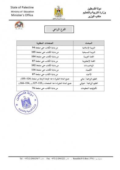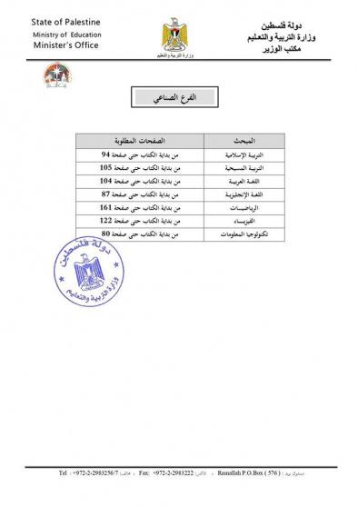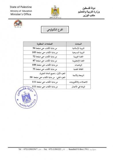 وأشارت الوزارة في بيان، إلى أنه سيتم تأجيل عقد الامتحانات العملية إلى موعد لاحق لكل من مبحثي الأتمتة والاتصالات للفرع التكنولوجي، ومبحث التدريس العملي للفروع المهنية.