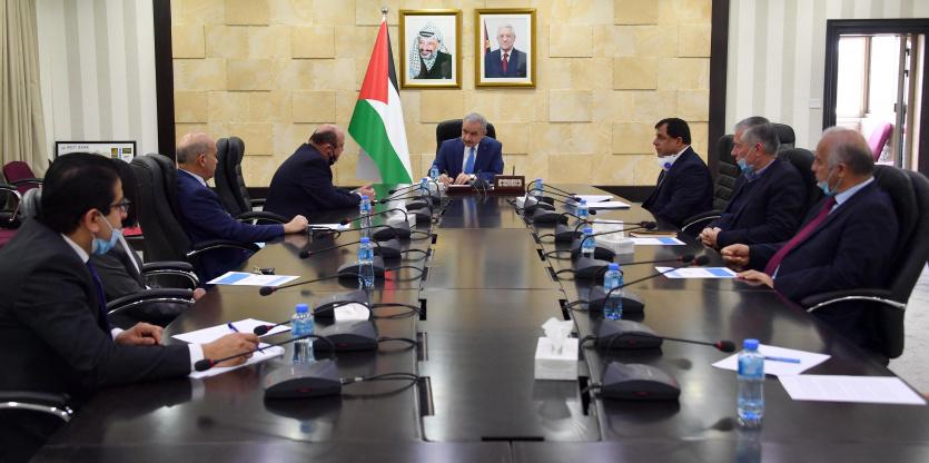 بحث رئيس الوزراء د. محمد اشتية مع مجلس إدارة سلطة النقد الجديد برئاسة المحافظ عزام الشوا الإجراءات البنكية خلال فترة حالة الطوارئ، وبدء التخطيط لمرحلة ما بعد كورونا من حيث إنعاش وتحفيز الاقتصاد، وذلك اليوم الأحد في مكتبه برام الله.