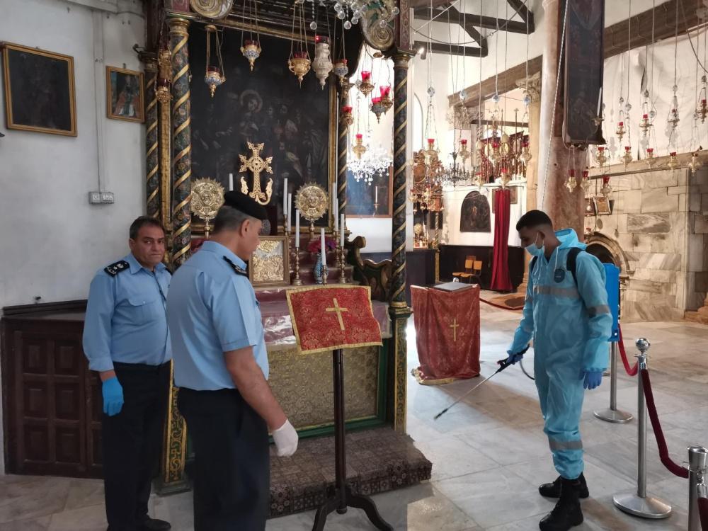 واصلت الشرطة اليوم وبالتعاون مع مديريات الأوقاف والطوائف المسيحية حملة تعقيم المساجد والكنائس من أجل استقبال المصلين وذلك بعد قرار الحكومة في فتح دور العبادة امام المصلين في محافظات الوطن .