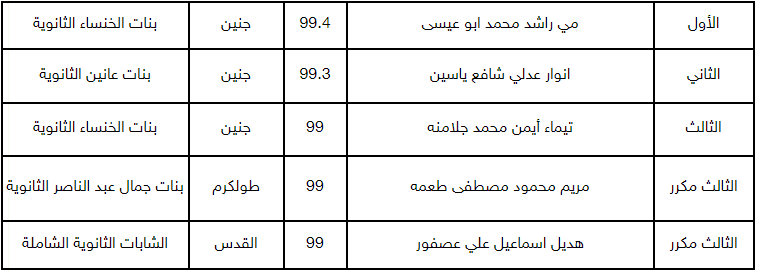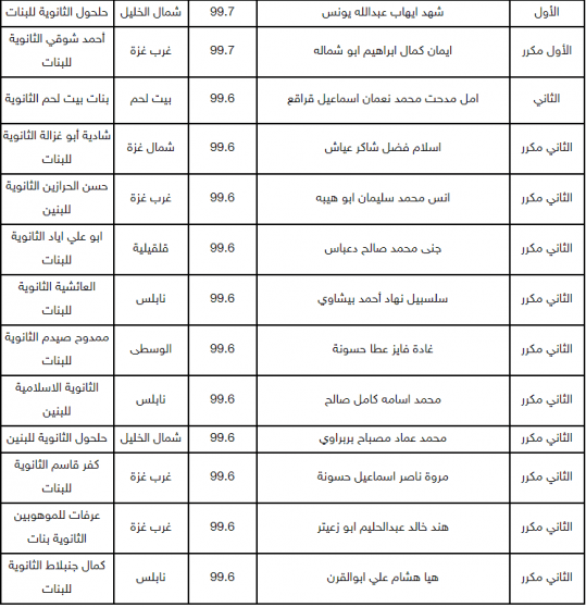 أما العشرة الأوائل للفرعين الأدبي والعلمي فكانت على النحو الآتي: