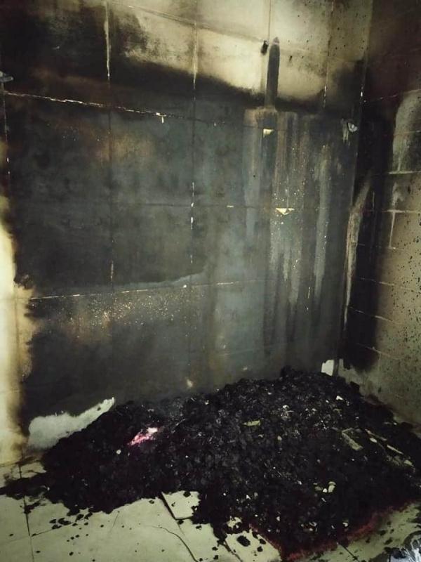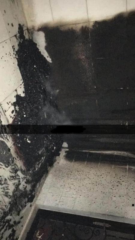 وأضرمت النيران في أجزاء من المسجد، وهرع الأهالي وأخمدوها، ووصلت طواقم الإطفاء إلى المكان، لاستكمال عملية اخماد النيران بالكامل حتى لا تأتي على المسجد بأكمله.