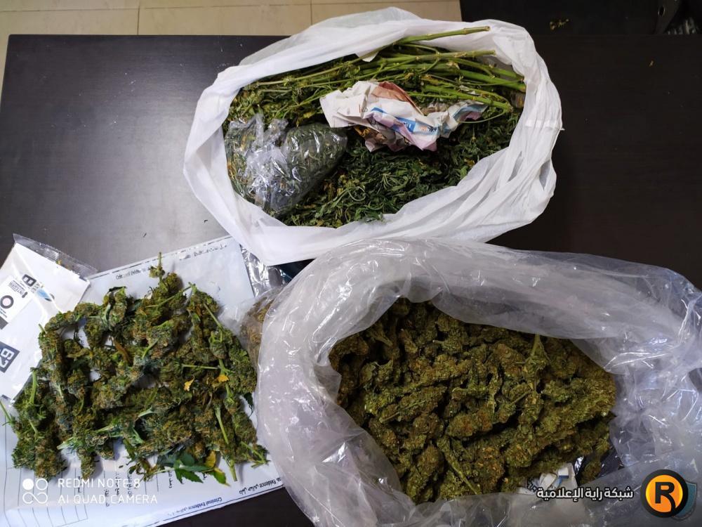 كما ضبطت خلال عملية التفتيش أكثر من كغم من عرانيس يشتبه بأنها عرانيس الماريجوانا واوراقها، وقطعة سلاح مصنعة بحوزة أحد الاشخاص.