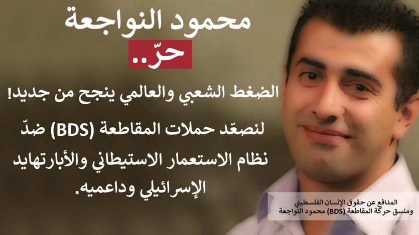 افرجت سلطات الاحتلال، اليوم الاثنين، عن الناشط محمود النواجعة، منسق حركة المقاطعة (BDS) بعد اعتقال دام 19 يوما.