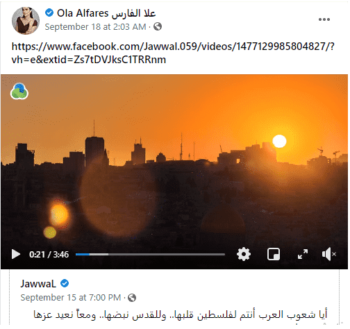 وعبّر بالتعليقات الآلاف من الشباب العربي عن اعتزازهم بفلسطين وشعبها ونضالها المستمر واعتبروا فلسطين قضية تخص الشعب العربي ككل.