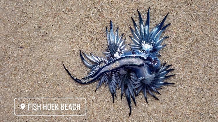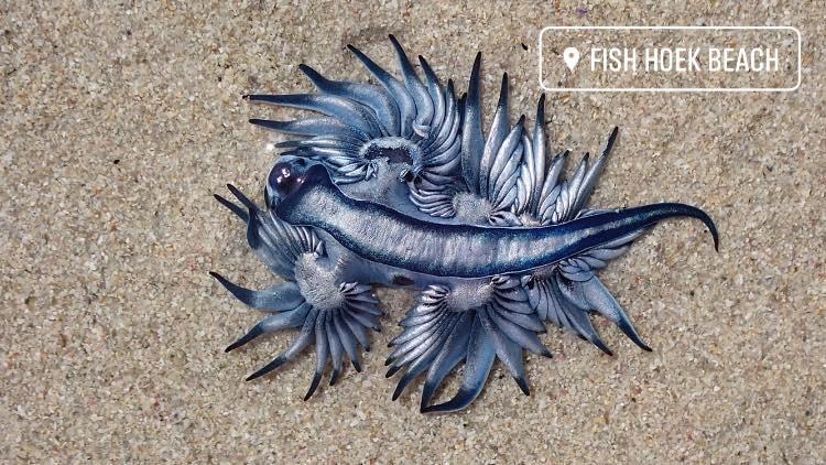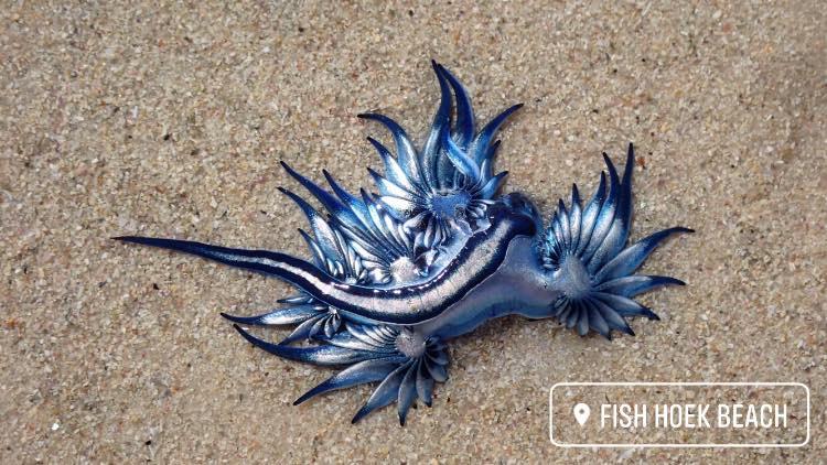 ووقع العثور على المخلوق المسمى Glaucus atlanticus، والمعروف باسم التنين الأزرق، على شاطئ Fish Hoek بالقرب من كيب تاون في جنوب إفريقيا من قبل امرأة تدعى ماريا فاغنر، كانت في نزهة على الأقدام، بعد أن جرفته الأمواج إلى الشاطئ.