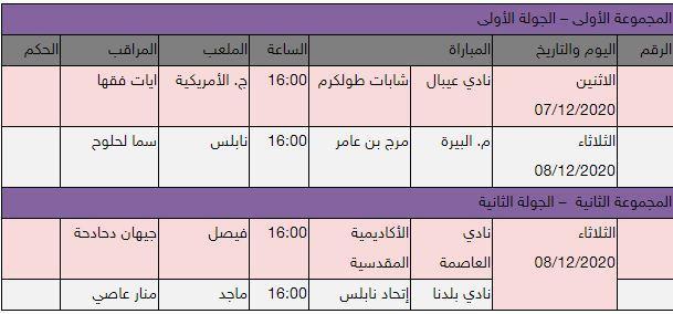 أعلن الإتحاد الفلسطيني لكرة القدم، اليوم الأربعاء، عن جدول مباريات الجولة الأولى من الدور الأول لبطولة كأس رئيس الاتحاد للأندية النسوية، والتي تقام بالتعاون مع الاتحاد الياباني لكرة القدم، وذلك على النحو الآتي: