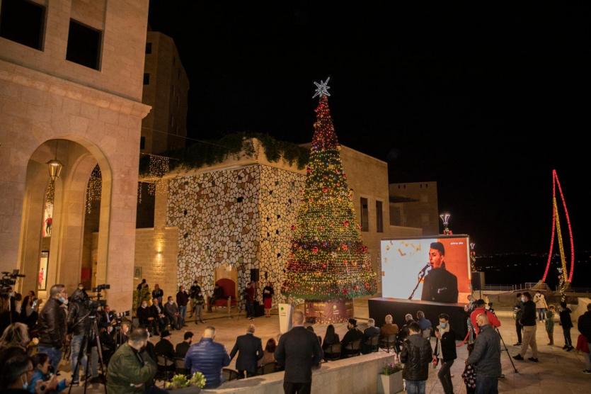 وتخلل الحفل الذي استهل بالنشيد الوطني، فقرات فنية وتراتيل دينية مباشرة من بيت لحم، والناصرة، إضافة إلى رسالتي محبة موجهة من عائلتين في لبنان وغزة.