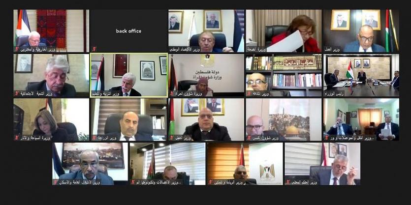 واستمع المجلس إلى تقرير حول الحالة الوبائية في فلسطين حيث أشار التقرير إلى أن الإجراءات والتدابير الوقائية التي اتخذت أسهمت في تسطيح المنحنى الوبائي في العديد من المحافظات بسبب تقيد المواطنين بارتداء الكمامات والتعقيم والحرص على عدم المشاركة في التجمعات.