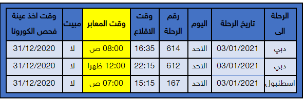 ودعت الخارجية في بيان صحفي، جميع من سجلوا لديها عبر المنصة الالكترونية ولم يتمكنوا من السفر على متن الرحلات السابقة، المباشرة بالحجز وشراء التذاكر على متن رحلات الملكية كما هو موضح في الجدول التالي، عبر نظام الحجز الالكتروني https://repat.rj.com/، او عبر وكيل سفرهم المحلي. علماً بأن هذه الفرصة هي فرصتهم الاخيرة للسفر.