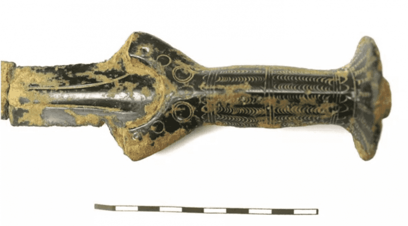 ورُصّع مقبض السيف بنقوش دائرية دقيقة وهلال. وقام علماء الآثار من متحف سيليزيا القريب بفحص القطع الأثرية وربطها بالعصر البرونزي، منذ نحو 3300 عام. ولم يكن من الواضح سبب خروج السيف في وسط الغابة، على الرغم من أن الأمطار الأخيرة ربما جرفت ما يكفي من التربة لجعلها مرئية لأول مرة منذ آلاف السنين. ويخطط علماء الآثار لدراسة المنطقة المحيطة بشكل أكبر.
