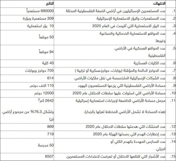 تقرير موسع يرصد انتهاكات الاحتلال في فلسطين خلال 2020