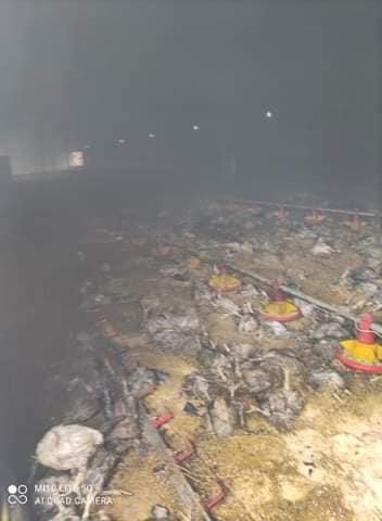 بالصور.. نفوق 12 ألف طير إثر حريق داخل مزرعة دجاج جنوب جنين