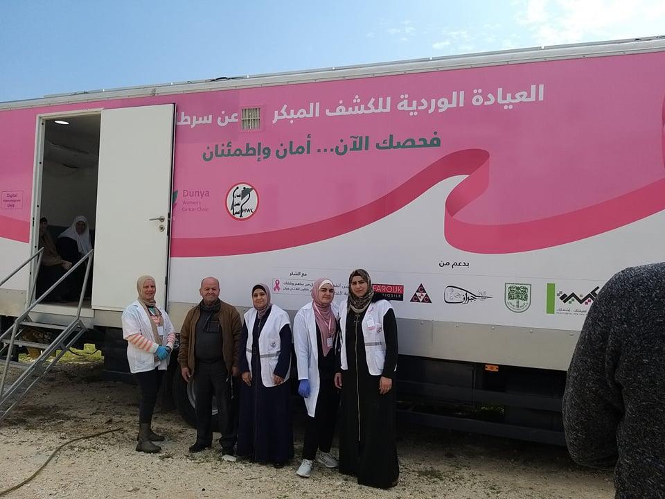 ويسجل لمركز دنيا والعيادة الوردية المتنقلة الكشف 258 حالة إصابة بسرطان الثدي كان نصيب العيادة الوردية منها في غضون عامين 30 حالة. وبنظرة على التسلسل في تشخيص حالات الإصابة عاماً بعد أخر يلحظ مدى التطور في الإقبال على المركز إذ كانت البداية بتشخيص 12 حالة إصابة لتصل إلى 23 حالة في نهاية العام 2020 الذي شهد حالة شلل في الحياة العامة للفلسطينيين بسبب جائحة كورونا وما تبعها من إجراءات. فيما كان نصيب العام 2019 الأكبر إذ وصل إلى 35 حالة إصابة.