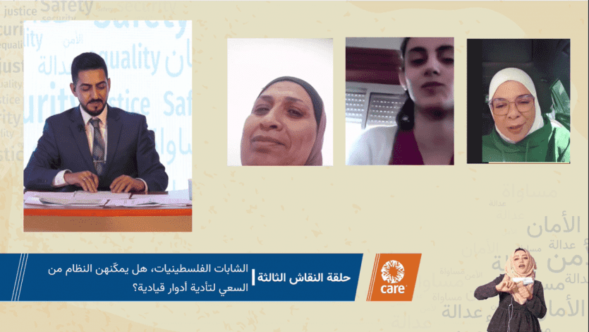 أما حلقة النقاش الأخيرة، فقد تمحور فيها النقاش عن الشابات الفلسطينيات ومدى تمكنهن من تأدية ادوار قيادية في ظل النظام الحالي، حيث شارك في الحوار كل من السيدة نهاد وهدان، رئيس وحدة النوع الاجتماعي في وزارة الداخلية والسيدة هبة طيبي مدير مركز التمكين الاقتصادي الإقليمي – منظمة كير العاملية فلسطين (الضفة الغربية/غزة) والآنسة زينة ملحم وهي مشاركة في نشاط "قنصل ليوم واحد" حيث أكد المشاركون على ضرورة تفعيل القوانين الداعمة للنساء والنساء ذوات الاعاقة حتى يتمكنّ من اداء دورهنّ القيادي بفعالية تامة.