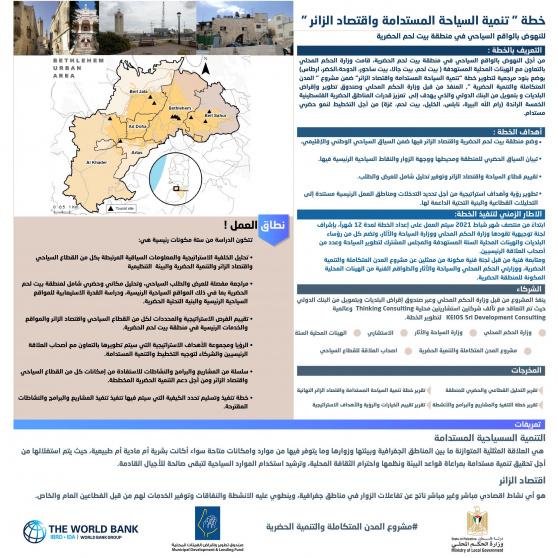 إيمانا بمبدأ تحقيق التنمية والنمو الحضري المستدام والنهوض بالقطاع السياحي باعتباره من أهم القطاعات التي تساهم في رفد الاقتصاد الفلسطيني بعوامل النجاح والازدهار وجذب الاستثمارات الأجنبية والمحلية، قامت وزارة الحكم المحلي بالتعاون مع الهيئات المحلية المستهدفة (بيت لحم، بيت جالا، بيت ساحور، الدوحة، الخضر، ارطاس) بوضع بنود مرجعية لتطوير خطة "تنمية السياحة المستدامة واقتصاد الزائر" والهادفة إلى النهوض بالواقع السياحي في المنطقة الحضرية.