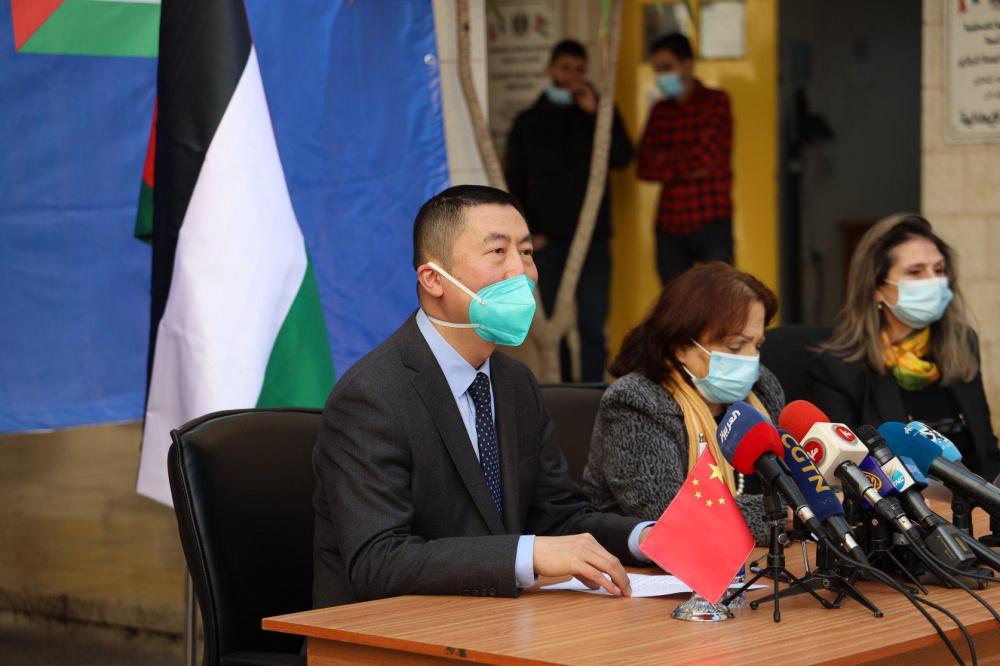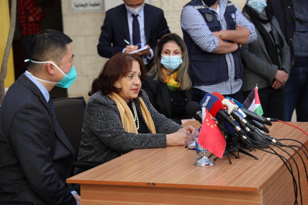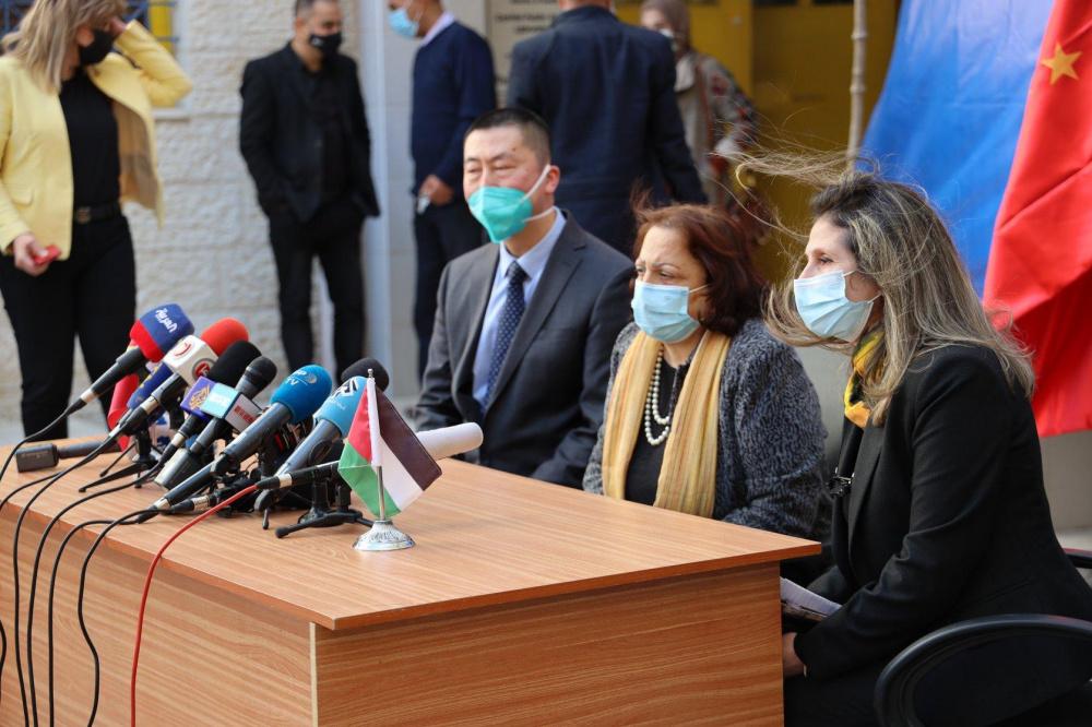 مراسم تسلُّم وزارة الصحة الفلسطينية 100 ألف جرعة من لقاح سينوفارم