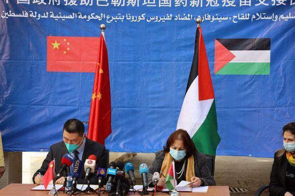 تسلّمت وزارة الصحة الفلسطينية، مساء يوم الإثنين 29 مارس / آذار 2021، 100 ألف جرعة من لقاح "سينوفارم" المضاد لفيروس كورونا، بتبرع من الصين.
