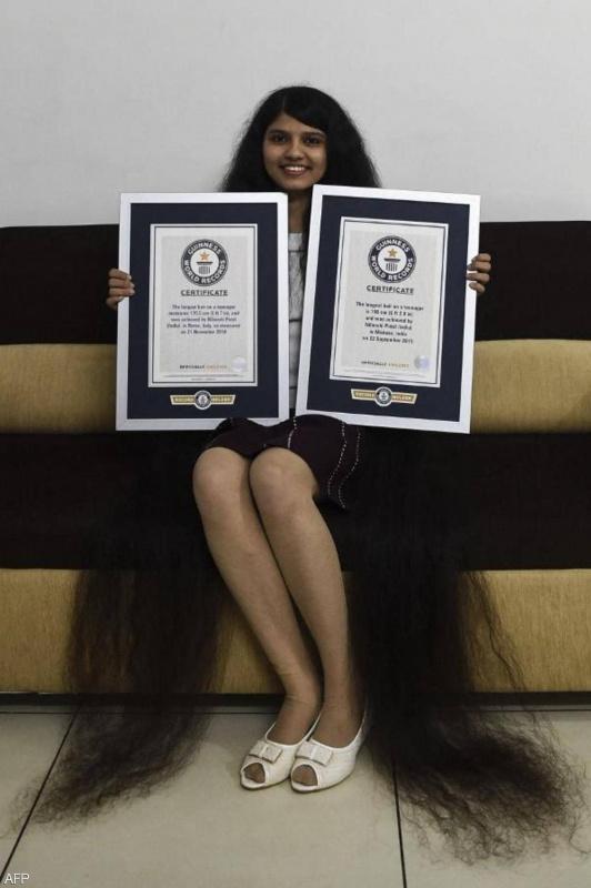 وتمتلك نيلانشي باتيل، البالغة من العمر 18 عاما، الرقم القياسي لأطول شعر في سجل غينيس، منذ العام 2018، بعدما وصل طول شعرها إلى أكثر من 6 أقدام (1.8 متر تقريبا).