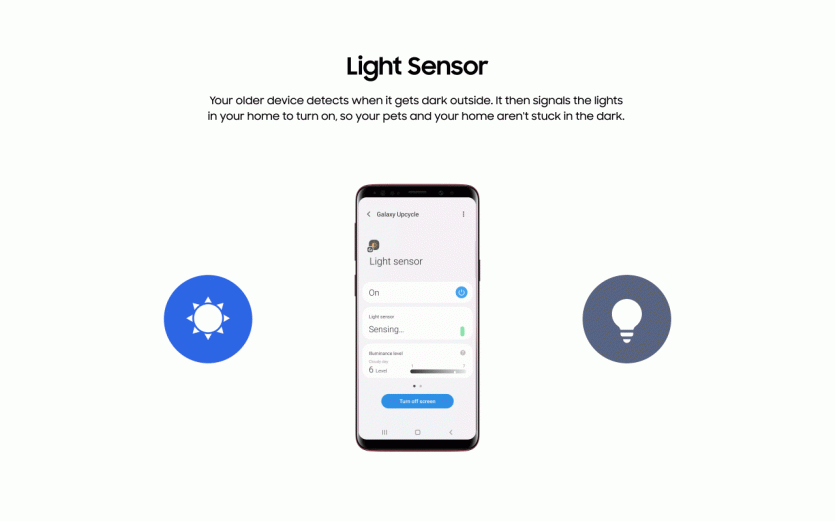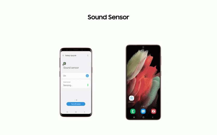 وأشارت سامسونغ إلى أن تطبيق Galaxy Upcycling at Home الذي أطلق منه إصدار تجريبي حاليا، سيمكن أصحاب هواتف Galaxy القديمة من استغلال أجهزتهم كأدوات للاستماع لما يدور في أرجاء منازلهم، فالتطبيق يمكنه تسجيل صوت الطفل الصغير في حال كان بعيدا عن أهله في غرفة ثانية، أو التعرف على صوت الحيوانات الأليفة في حال لم يتواجد صاحبها في المنزل، وبعد توثيق هذه الأصوات يرسلها إلى هاتف المستخدم المحمول على شكل رسائل صوتية.