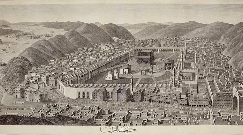 رسم بانورامي نادر للكعبة