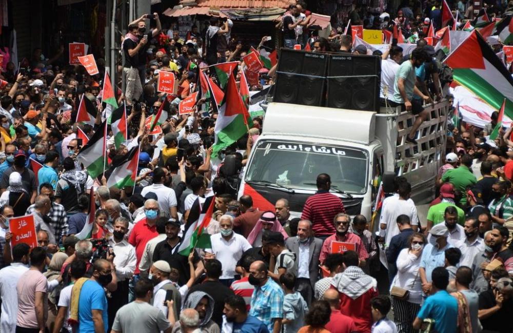 وخرجت مسيرات ونظمت وقفات تضامنية مع الشعب الفلسطيني في إربد والسلط ومعان والكرك ومادبا وغيرها من المناطق.