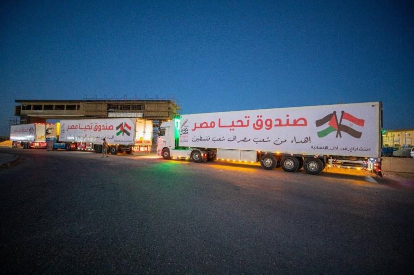 شاهد.. مصر تقدم أضخم قافلة مساعدات إلى قطاع غزة