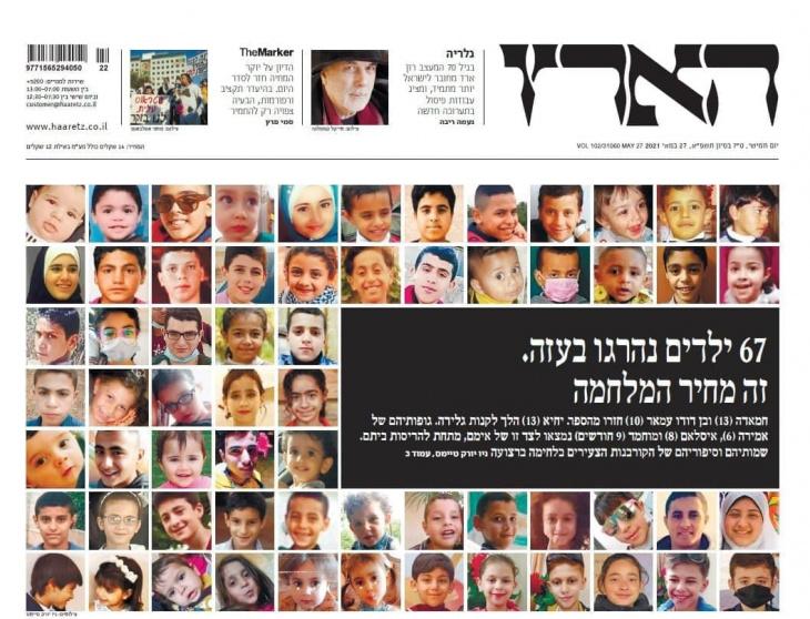 نشرت صحيفة "هآرتس" الاسرائيلية، على صفحتها الأولى، اليوم الخميس، صور 67 طفلا استهدفتهم طائرات الاحتلال الحربية في عدوانه الأخير على قطاع غزة، ضمن ما أسماه "ببنك اهدافه" في القطاع المحاصر.