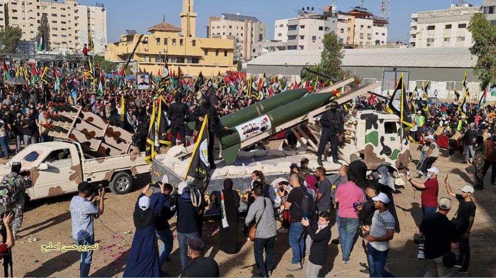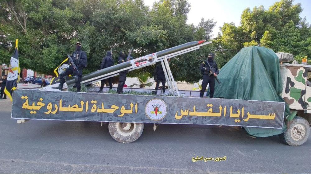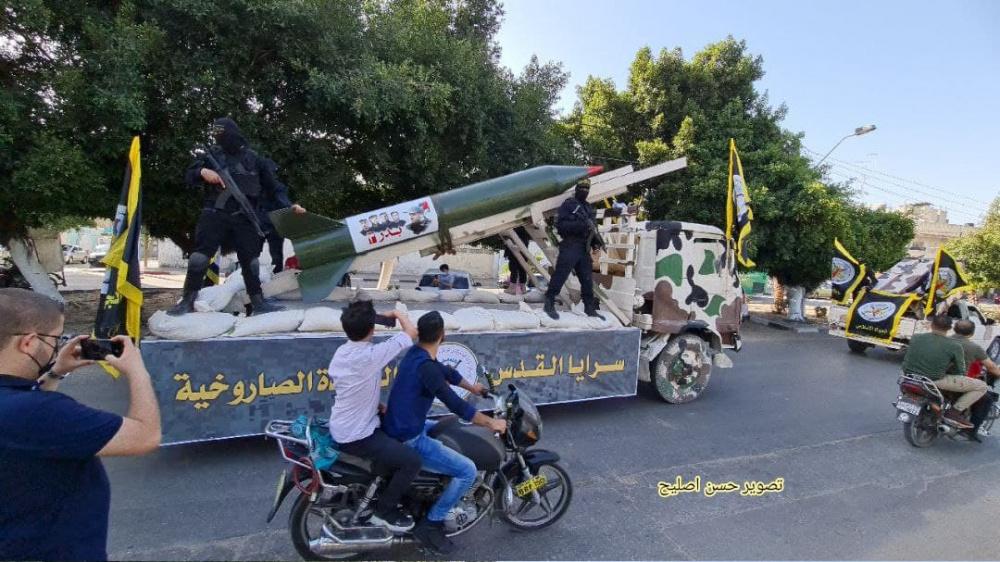 نظمت سرايا القدس ، الجناح العسكري لحركة الجهاد الإسلامي، مساء اليوم السبت 29 مايو 2021، عرضا عسكريا، في منطقة السرايا، وسط مدينة غزة .