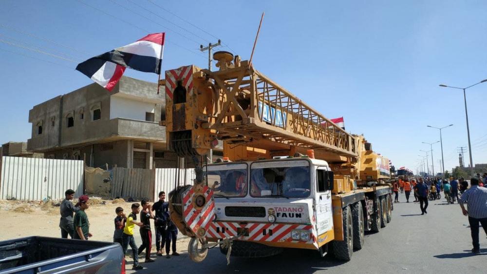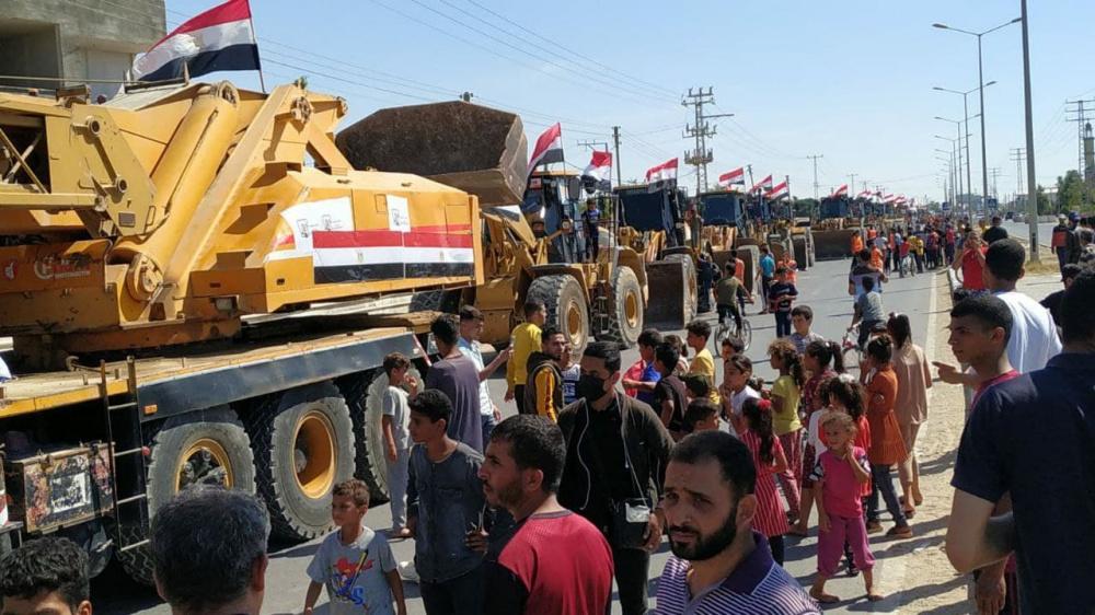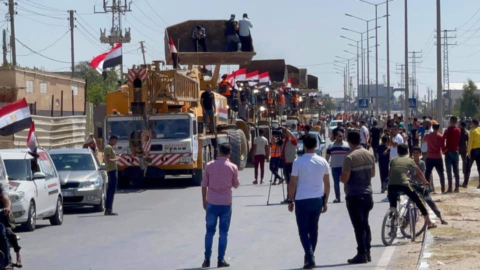 شاهد: معدات وأطقم هندسية مصرية تدخل غزة لإزالة الأنقاض