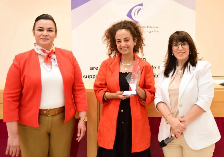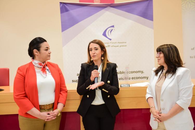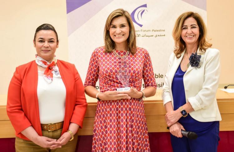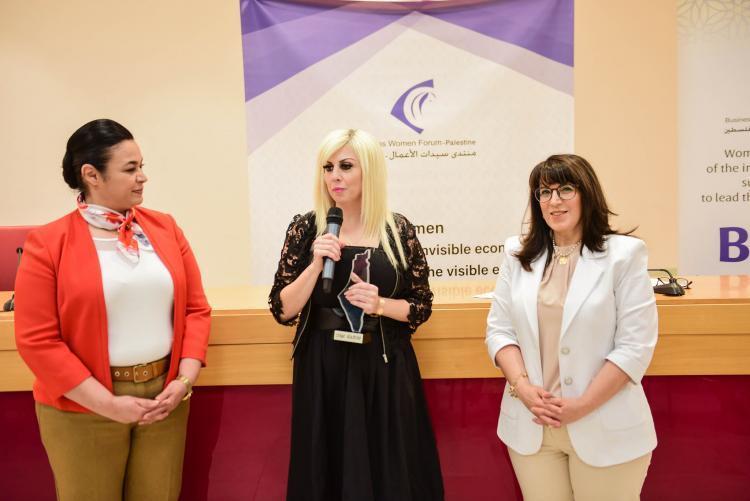 بعد ذلك، قام منتدى سيدات الأعمال، وهو الحاضنة للنساء الرياديات في فلسطين، بتكريم مجموعة من السيدات الملهمات اللاتي تركن بصمة مؤثرة وأضفن لانجازات المرأة الفلسطينية في إطار "من نساء ملهمات لنساء ملهمات".