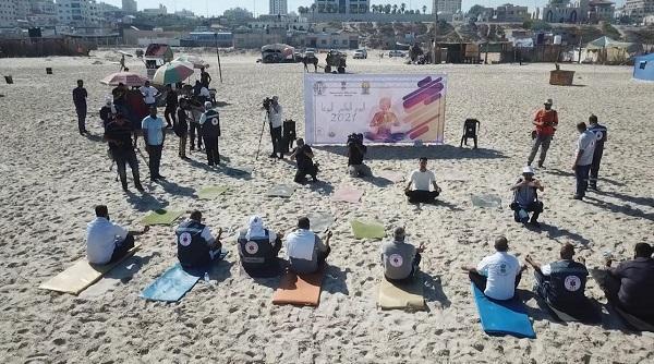 كما تم تنظيم حفل منفصل في قطاع غزة بالاشتراك مع مركز الطاقة الإيجابية للشباب، حيث قام المشاركون بممارسة اليوغا على شاطئ غزة.