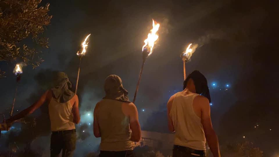 ويُشعل الشبان الفلسطينيون النار في إطارات مطاطية، وينفخ آخرون في أبواق تُصدر أصواتًا مُزعجة، بينما يُسلّط البعض مصابيح إنارة "ليزر" نحو "كرافانات" البؤرة الاستيطانية، ويحمل غيرهم مشاعل إنارة.