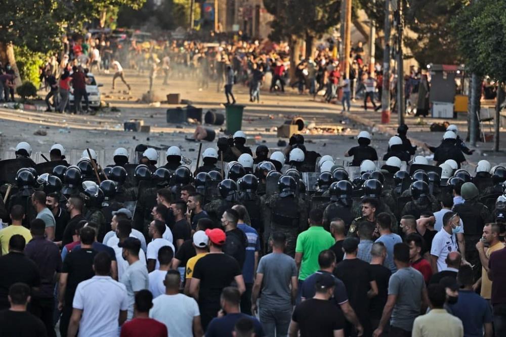 رام الله قبل قليل خلال فضّ مسيرة خرجت تنديدا بوفاة الناشط نزار بنات pic.twitter.com/0JoExPgZq6