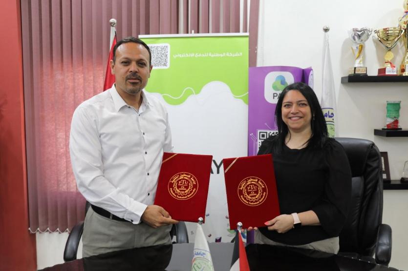 وقعت جامعة فلسطين التقنية- خضوري مع الشركة الوطنية للدفع الإلكتروني (Jawwal Pay)، اليوم ، اتفاقية لتقديم خدمات الدفع الإلكتروني من خلال محفظة Jawwal Pay، وذلك في مقر رئاسة الجامعة الكائن في مدينة طولكرم، بحضور نائب رئيس الجامعة للشؤون الإدارية والمالية د. نافع عساف والسيدة سامية درويش مديرة التسويق وتطوير الأعمال في شركة Jawwal Pay، وتهدف الاتفاقية إلى توفير تحصيل المستحقات المترتبة على الطلبة إلكترونياً عبر التطبيق الخاص بالشركة.