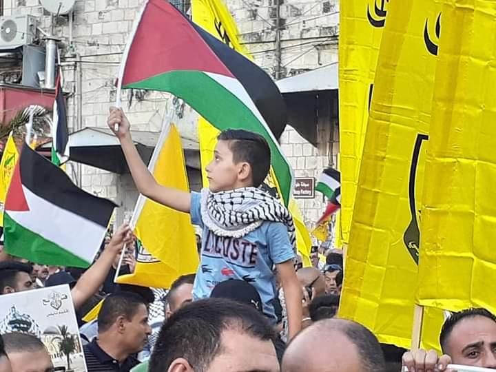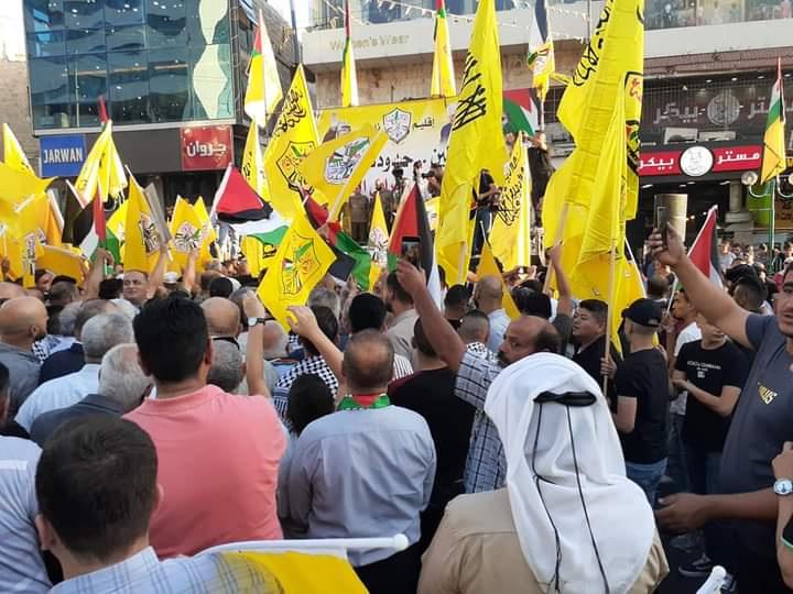 وشارك بالمهرجان آلاف المواطنين الفلسطينيين في محافظة نابلس على دوار الشهداء استجابة لدعوة وجهتها حركة فتح دعما للشرعية الفلسطينية ونصرة للمؤسسة الأمنية الفلسطينية وتطبيق القانون دون مصالح.