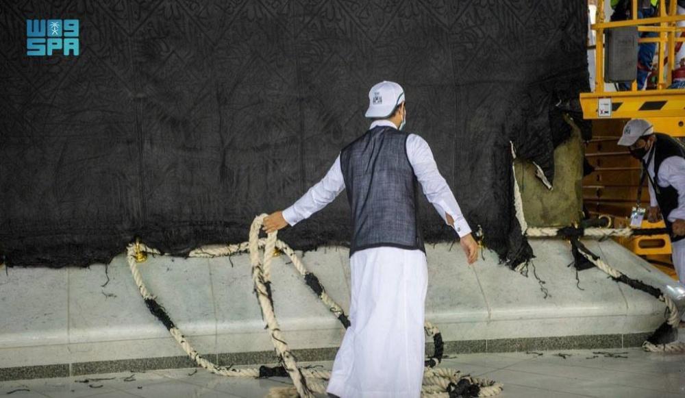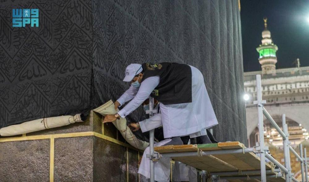 قامت الرئاسة العامة لشؤون المسجد الحرام والمسجد النبوى، برفع الجزء السفلي من كسوة الكعبة المشرفة بمقدار ثلاثة أمتار تقريباً، وتغطية الجزء المرفوع بإزار من القماش القطني الأبيض بعرض مترين تقريباً من الجهات الأربع، وذلك كما جرت العادة السنوية وحسب الخطة المعتمدة لموسم حج هذا العام 1442هـ، بحسب وكالة الأنباء السعودية.
