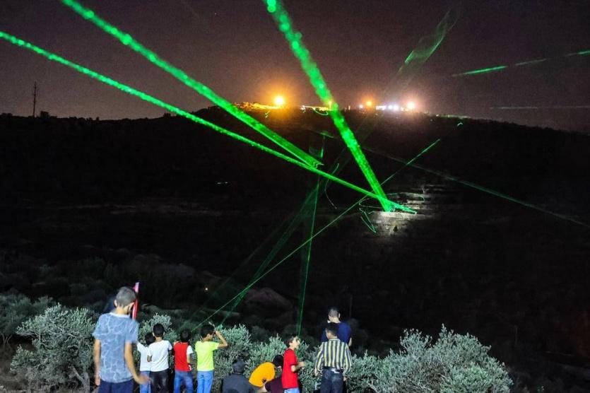 ويُشعل الشبان الفلسطينيون النار في إطارات مطاطية، وينفخ آخرون في أبواق تُصدر أصواتًا مُزعجة، بينما يُسلّط البعض مصابيح إنارة "ليزر" نحو "كرافانات" البؤرة الاستيطانية، ويحمل غيرهم مشاعل إنارة.
