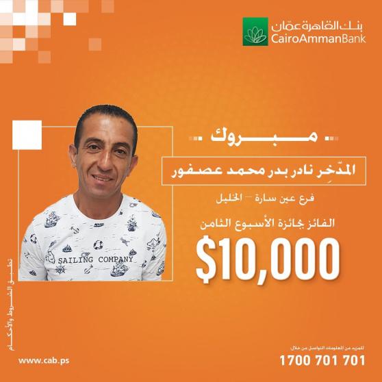 بنك القاهرة عمان يكشف هوية الفائز الثامن بجائزة الـ10 الاف دولار في حملة "ربحك قدام عيونك"