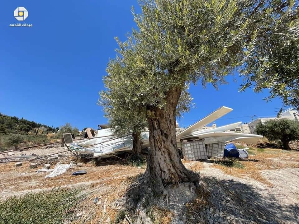 وأوضح أحمد أبو سبيتان أن آليات الاحتلال اقتحمت أرضه وقامت بتجريفها والأشجار المزروعة فيها، وذلك بعد أيام من قيامه بتنفيذ قرار الهدم الذاتي لغرفتين في الأرض.
