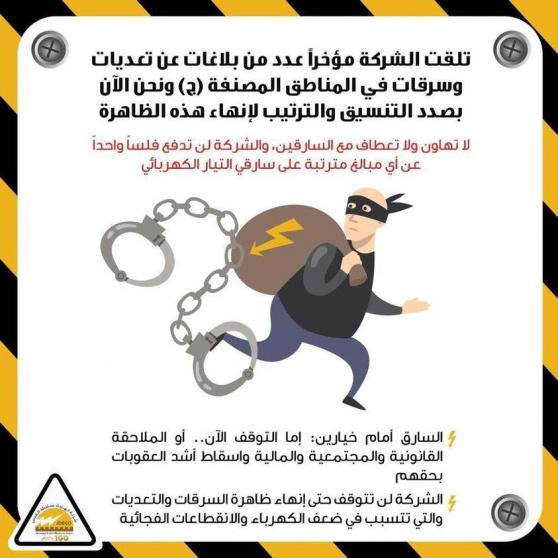 وتعهدت الشركة، على سرية البيانات المقدمة من المواطنين، متوعدة بإسقاط أشد العقوبات القانونية على "سارقي التيار الكهربائي".