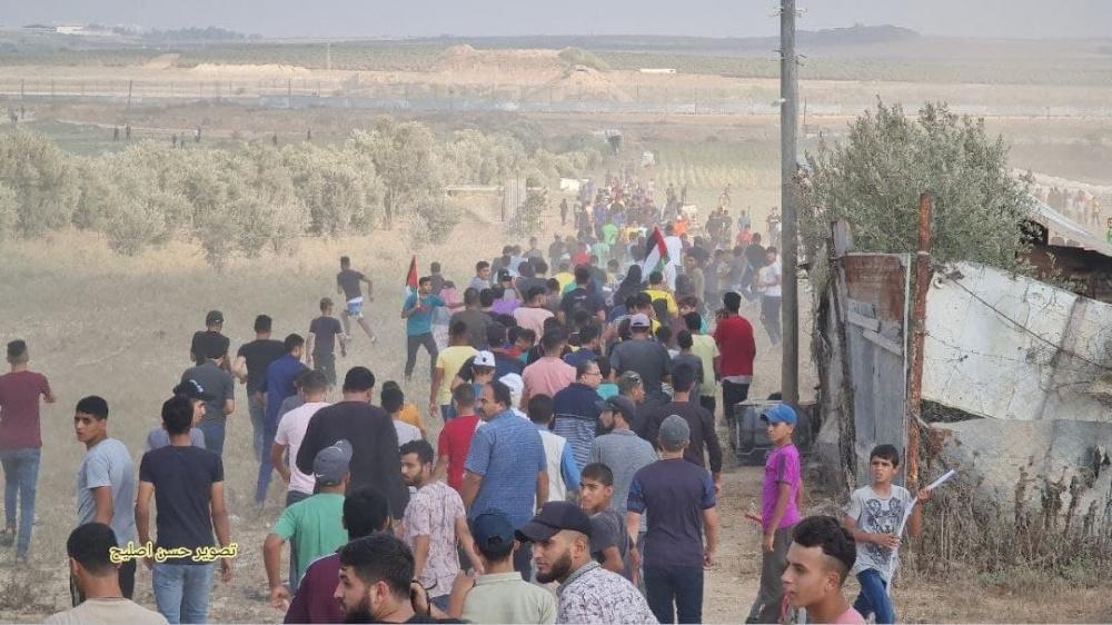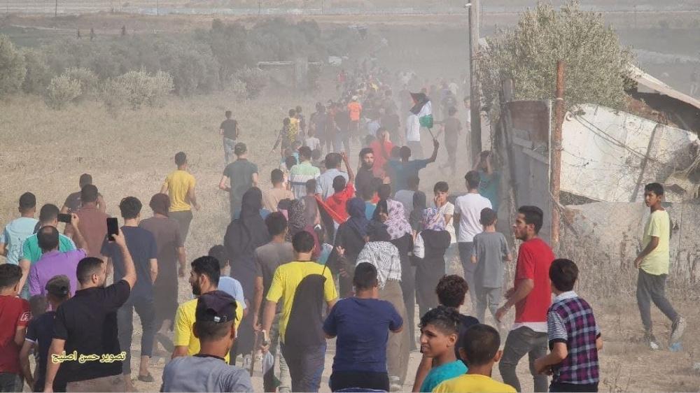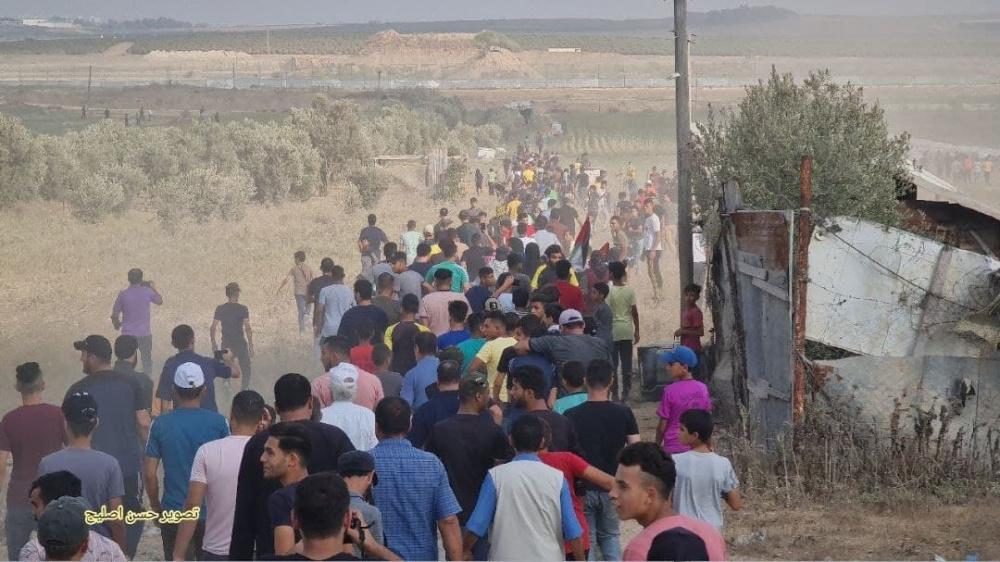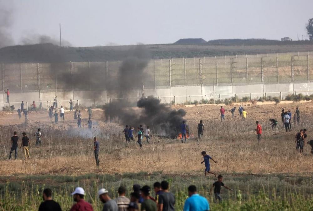 وأشعل الشبان الذين وصلوا إلى السياج الأمني الفاصل إطارات مطاطية في المنطقة، فيما أطلق جنود الاحتلال قنابل غاز والرصاص الحي باتجاههم.
