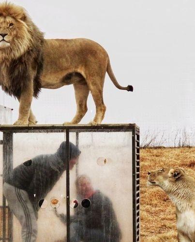 وتضع محمية الأسود "غلين غاريف Glen Garriff" في جنوب أفريقيا، زوارها داخل قفص، لرؤية وتصوير الأسود الأفريقية المذهلة بطريقة "آمنة وإنسانية".