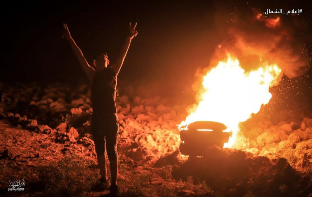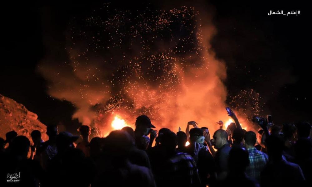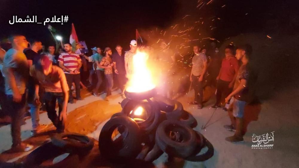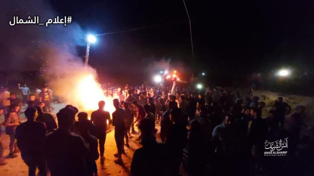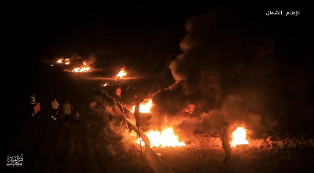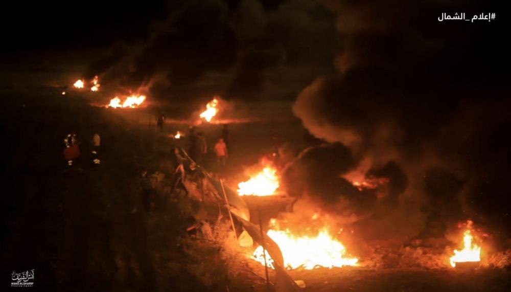 وتجمع المئات بالقرب من السياج الحدودي شرق جباليا ضمن تجدد فعاليات “الإرباك الليلي”، حيث أشعل الشبان الإطارات المطاطية وألقوا عبوات ناسفة محلية تجاه الجدار الأمني، كما أطلقوا بالونات حارقة ومتفجرة.