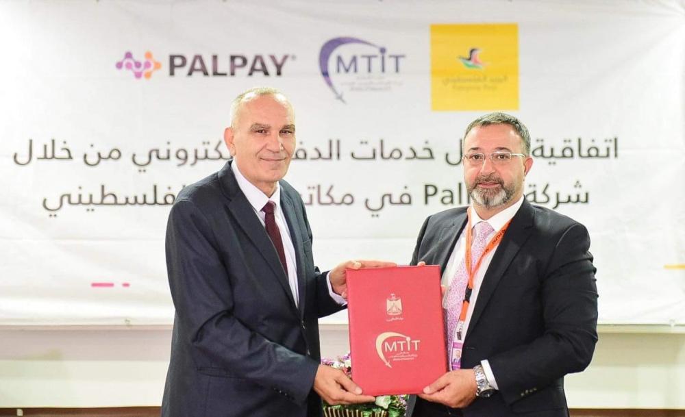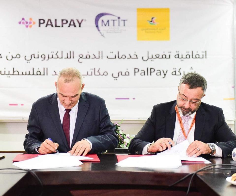 وقعت وزارة الاتصالات وتكنولوجیا المعلومات ممثلةً بمعالي الوزیر د.م. إسحق سدر، وشركة PalPay لأنظمة الدفع الإلكتروني ممثلة بمدیرھا العام السید معاویة القواسمي، في مقر الوزارة برام الله اليوم الأحد، اتفاقیة تعاون يتم بموجبها تقدیم خدمات الدفع الإلكتروني من PalPay في مكاتب البرید الفلسطیني.
