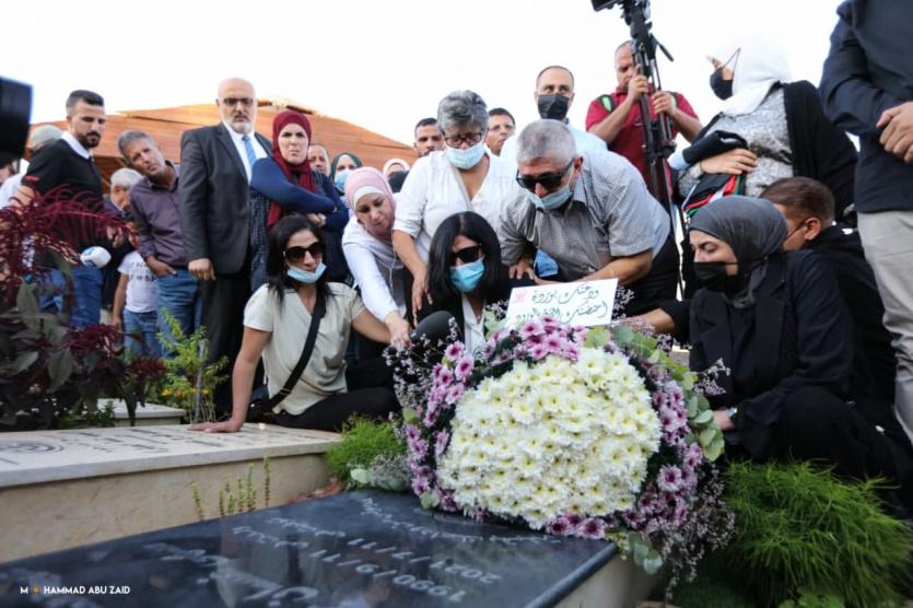 وضعت الأسيرة المحررة خالدة جرار، مساء اليوم الأحد، إكليل ورود على ضريح ابنتها سهى، التي وافتها المنية قبل شهرين.