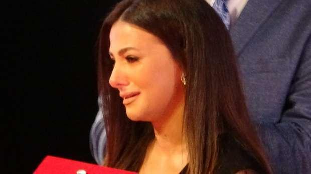 صور: دنيا سمير غانم تبكي في أول ظهور لها بعد رحيل والديها