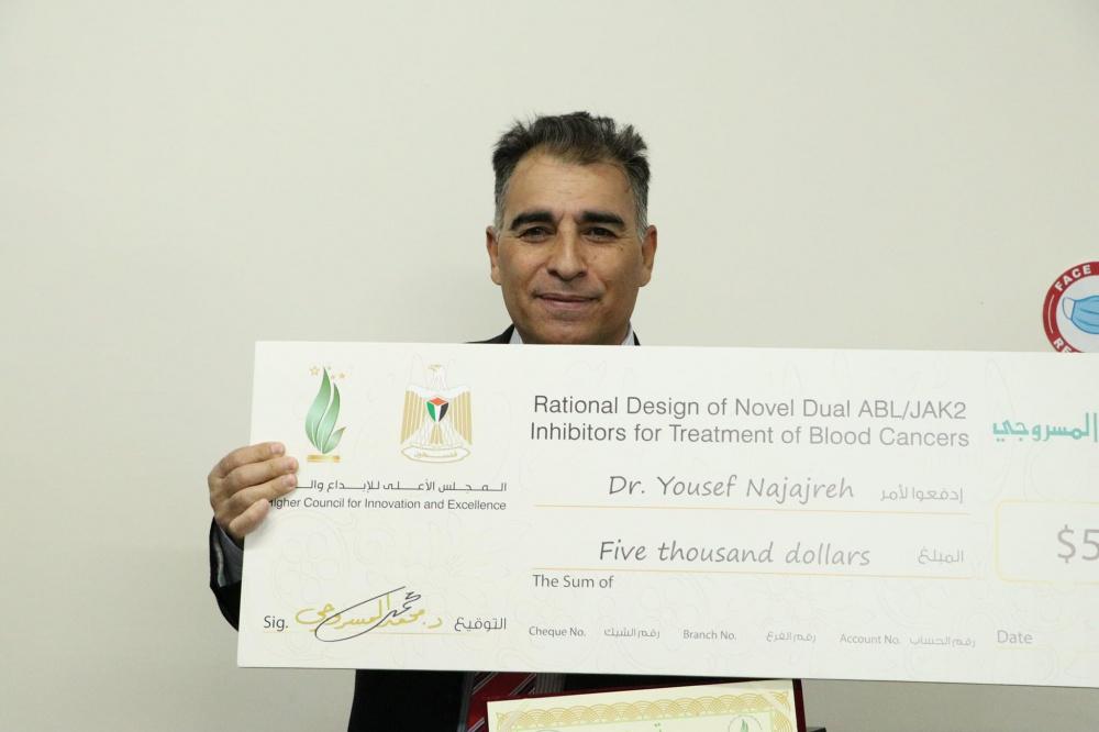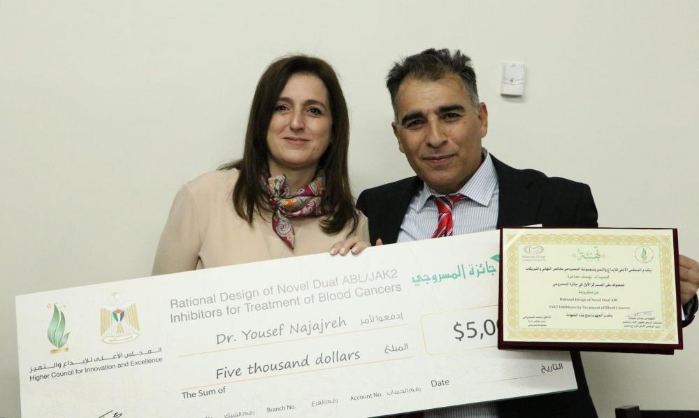 - وفاز بالمرتبة الأولى وجائزة قيمتها 5 آلاف دولار، د. يوسف نجاجرة، ومشروعه تصميم عقلاني لمثبطات ثنائية لانزيمات ABL/JAK2 كعلاج لسرطانات الدم.