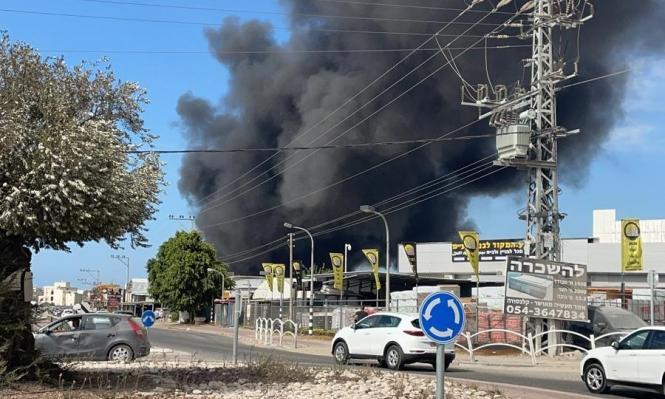 اندلع حريق هائل في المجمع التجاري "Z سنتر" في مدينة قلنسوة، ظهر اليوم السبت.