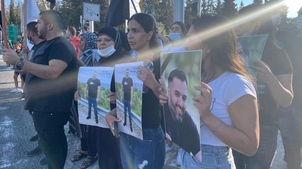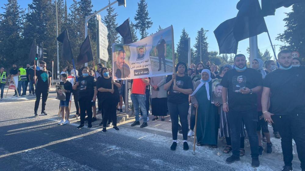 ورفع المحتجون في التظاهرة الأعلام السوداء وصورا لضحايا جرائم القتل، ولافتات منددة بالعنف والجريمة، وأخرى تدين تقاعس الشرطة الإسرائيلية عن القيام بدورها في لجم هذه الظاهرة.